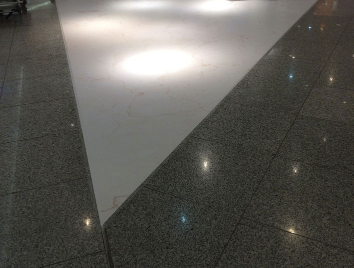 Für die Gestaltung des Point of Sale „PoS“ in DutyFree Shops fertigen wir immer wieder verschiedene Bodenfolien an. Die bedruckte Folie im Marmor-Design wurde mit Bodenschutzlaminat versehen, welches eine längere Haltbarkeit und gute Qualität des Drucks garantiert. Jetzt wirkt der Boden an den gewünschten Stellen wie echter Mamor.