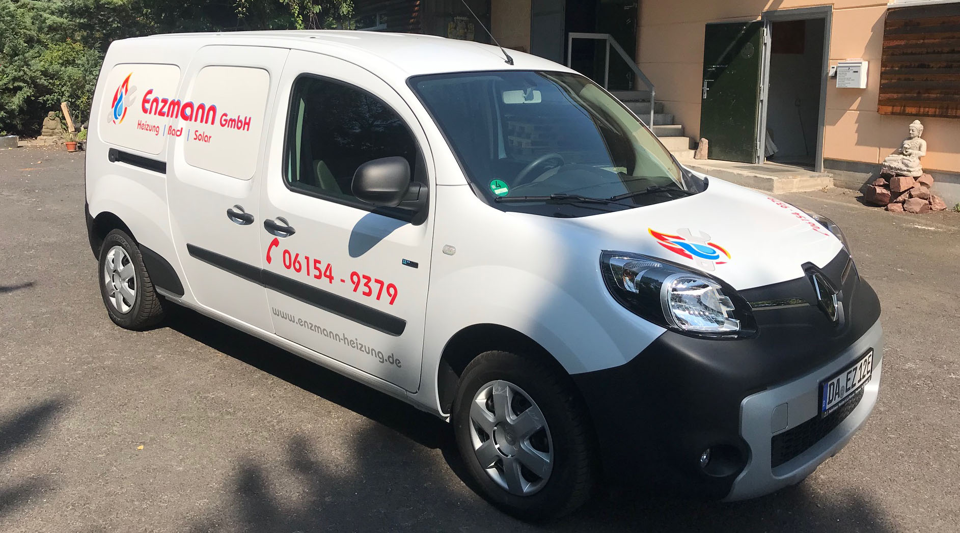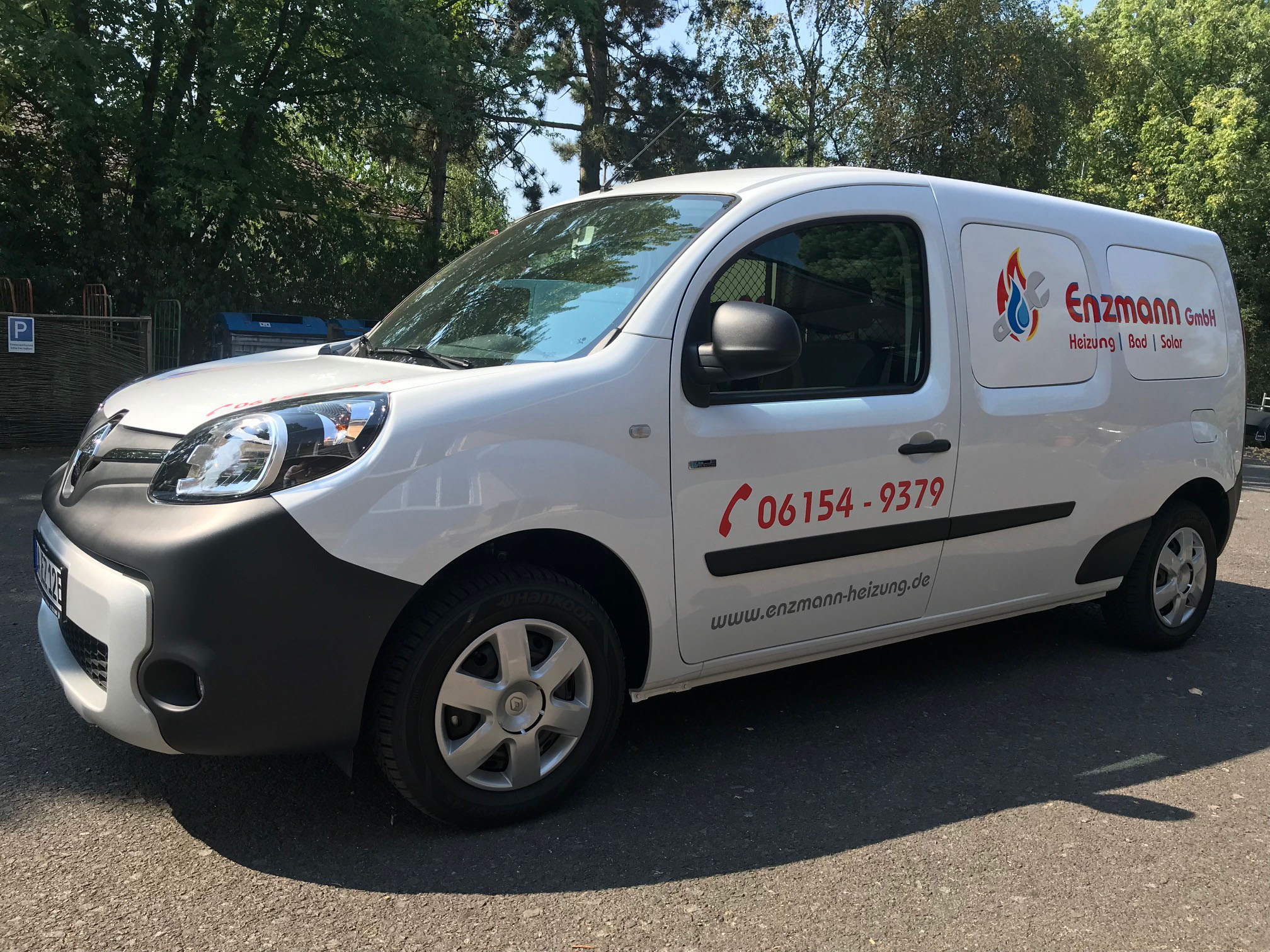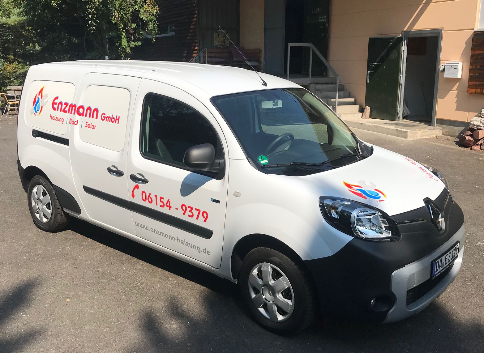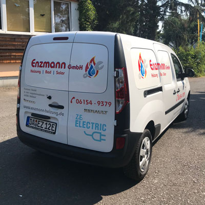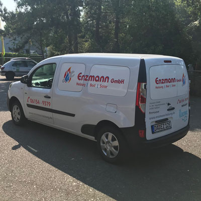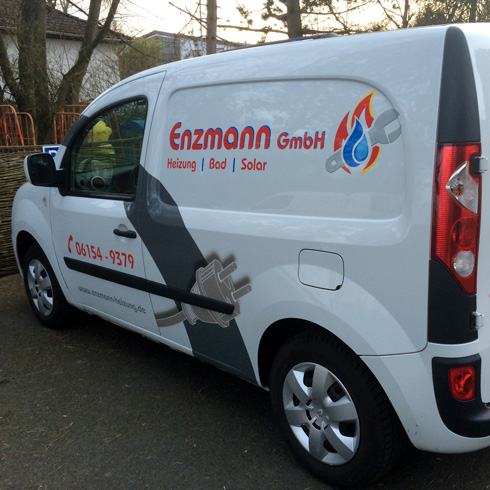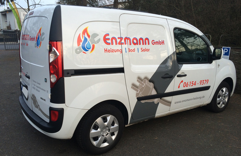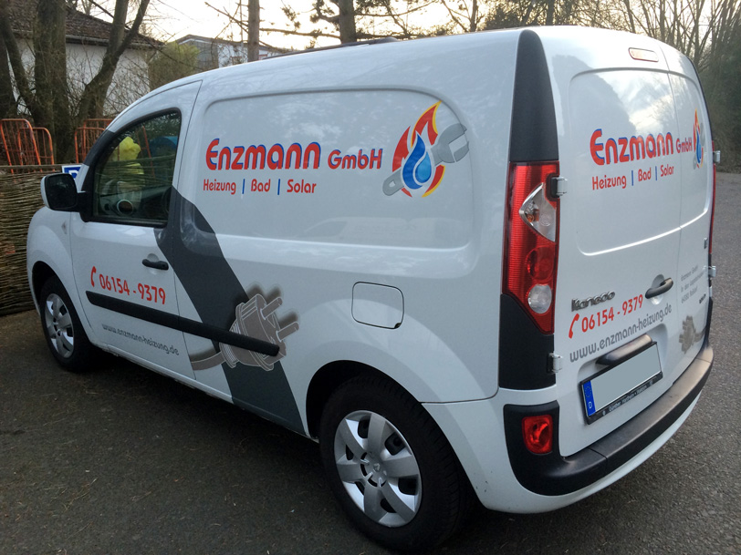 Hier haben wir für die Firma Enzmann einen Transporter (Elektrofahrzeug) mit hochglänzender, UV-beständiger und witterungsfester Folie beschriftet. Das Logo besteht aus verschiedenen Folien-Farben, welche erst am Auto zusammengefügt wurden. Auch nach mehreren Jahren lässt sich die Folie immernoch rückstandsfrei entfernen und ermöglicht so auch den Weiter-Verkauf des Fahrzeugs. Ggf. bleibt der Lack unter der Folie glänzend, während er außen herum etwas verblasst – dann hilft eine Politur des Autos um es komplett wieder auf Hochglanz zu bringen und die Schemen der Schrift verschwinden zu lassen.