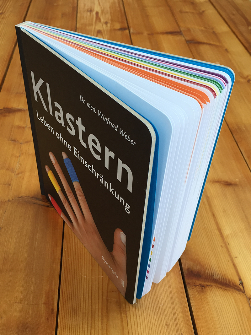 Für die neue Publikation „Klastern“, aus dem Synergia Verlag, haben wir die Herstellung übernommen. Die Einzelseiten und der Hardcover-Einband wurde mittels Stanz-Form beschnitten. Durch diese besondere Herstellungsart, wie zum Beispiel: die offenen Kanten und abgerundeten Ecken, wird das Buch zu einem echten Hingucker. Des weiteren bleibt das Buch durch die Fadenheftung mit losen Rücken des Hardcovers, ganz leicht aufgeschlagen liegen.