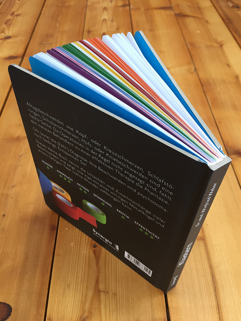 Die Gestaltung von Umschlag und Innenteil wurde von uns in Abstimmung mit dem Autor durchgeführt. Der dunkle Einband bildet einen tollen Kontrast, zum hellblauen Vorsatzpapier und zu dem bunten Farbleitsystem, welches durch die einzelnen Kapitel im Innenteil führt.
