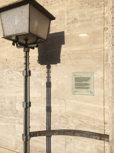 Für einige Baudenkmäler im Stadtgebiet der Stadt Darmstadt wurden neue Schilder angefertigt. Diese bestehen aus Einscheiben-Sicherheitsglas (ESG) und sind rückseitig spiegelverkehrt mit geplotteter Folie beschriftet. Als Hintergrund wurde darüber noch semitransparente Glasdekorfolie gezogen, die die Fassade noch durchscheinen lässt, bei der Schrift für Lesbarkeit sorgt, da sie unruhige Elemente im Hintergrund ausgleicht. Die Schilder sind mittels Edelstahl-Wandabstandshalter verdeckt geschraubt an den Fasssaden-Wänden montiert worden.